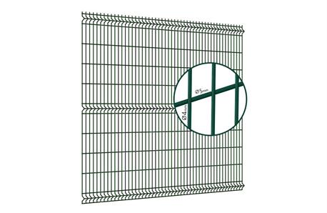 HYBRID 2500 est une clôture modulaire en panneaux de fil galvanisé plastifié et électro-soudé avec du polyester vert 6005 et Gris 7016.